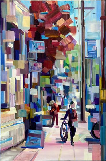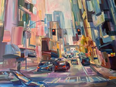 She began painting in high school 18 years ago in Southern California and earned a BFA in painting from the University of Oregon in 2010. She considers herself a self-taught landscape painter, gaining knowledge from plein air peers when she took her easel outdoor for the first time in 2009 and producing a prolific output ever since. Her unique style evolved from a desire to investigate human perception in aesthetics, and to stimulate our human senses by exaggerating the color and space we see around us.