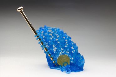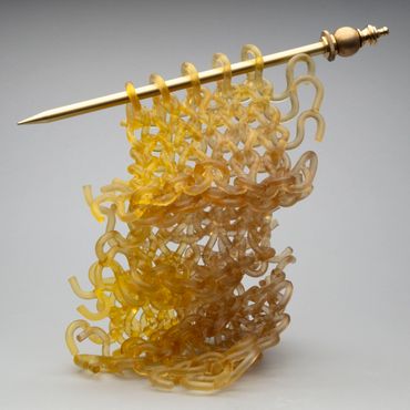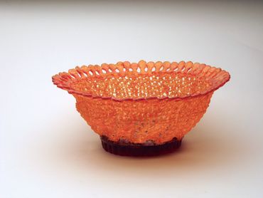 In 2000 Carol took her first hot glass class at Pratt Fine Arts Center in Seattle. She began kiln casting in 2002. In 2006, she combined her love of knitting, lost wax casting and glass to become the lone pioneer in the field of knitted glass. She has taught workshops internationally in Istanbul, New Zealand, Montreal and Tasmania, but she has also taught at Corning and elsewhere in the US. You can find her work in the collections of numerous museums worldwide: including Japan, France, Germany and the United States. Through October 14, 2024 one of her pieces is presently featured in the Toyama International Glass exhibition in Japan.