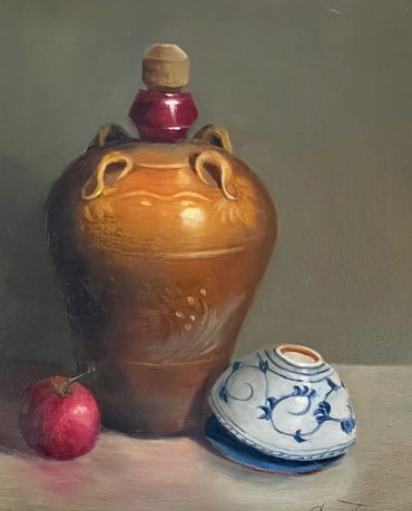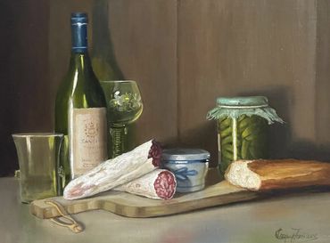 Cary Loopuyt Jurriaans is a local painter living on Whidbey Island where she runs the Whidbey Island Fine Art Studio. Her work largely centers around the still life and explorations of lightness and darkness therein. Jurriaans grew up in Holland and the Dutch paintings she grew up with and encountered as a child had a deep influence on her practice.