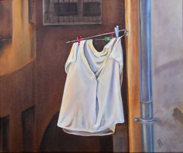Façades and Fables showcases the diverse mediums that have become integral to Jamie Rawding’s artistic repertoire. Her foray into art began with metalsmithing in 1986 at the Torpedo Factory in Alexandra, where she crafted jewelry from sheet metal, wire, and found objects. Over time, she incorporated semi-precious stones and pearls, drawn to the incongruity of combining precious materials with found objects. This fascination extends into her painting, where she renders unassuming building façades in the elegance of oil on canvas.