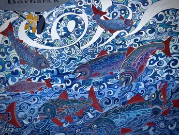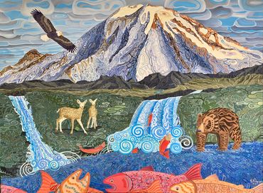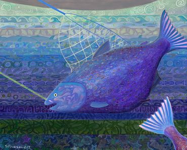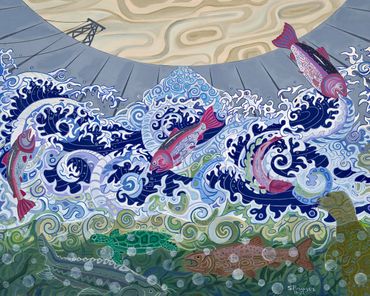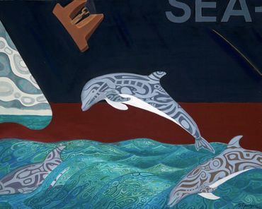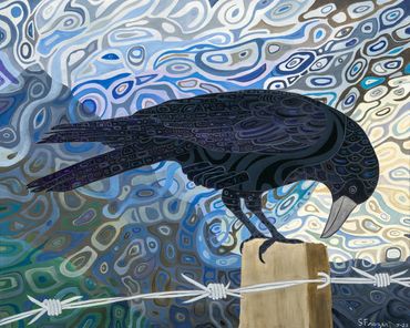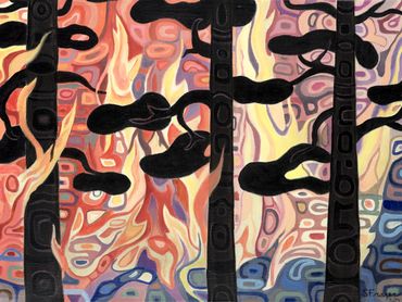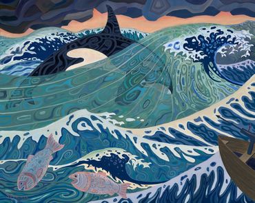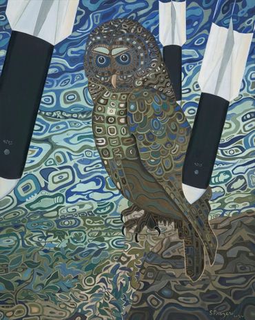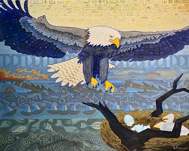 Having honed his skills as a self-taught painter, Frazer's work showcases a rich visual language characterized by intricate patterns and subliminal details. His compositions blend elements of wildlife and human impact, urging viewers to contemplate the consequences of our actions on the natural world. With influences from Northwest indigenous art and Japanese ukiyo-e, Frazer blends storytelling, history, and a contemporary narrative to capture the essence of our time and offer a compelling perspective on the urgent need for change.