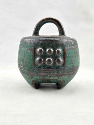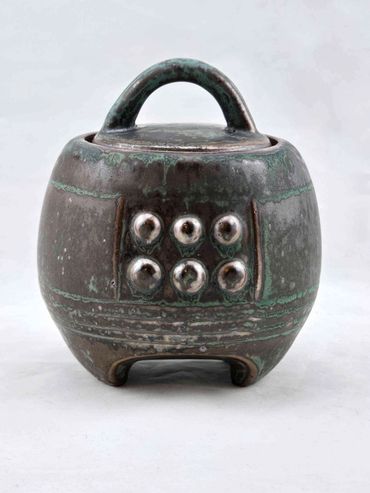 removes all that is non-essential and leaves simple and bold forms with a clear articulation of thought and purpose. In her most recent series, ancient Asian bells were used as inspiration to generate strong functional forms with refined lines and 'rivets' to enhance the scale and proportion to each piece.