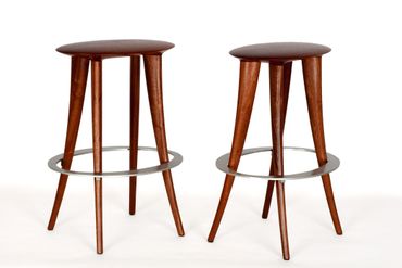 John Kirschenbaum is a local furniture maker whose approach to furniture design is to first address function. He believes a successful piece should convey its purpose, invite its use through hand and eye appeal, perform its function, and be comfortable and fun to use. He was previously a sculptor, and the curves and shapes of his wood furniture reflect such skilled craftsmanship.